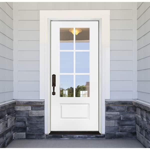 Legacy 36 in. x 80 in. RHIS 3/4 Lite 6L SDL Clear Glass Primed Unfinished Fiberglass Prehung Front Door w/QS_4-9/16"Jamb
