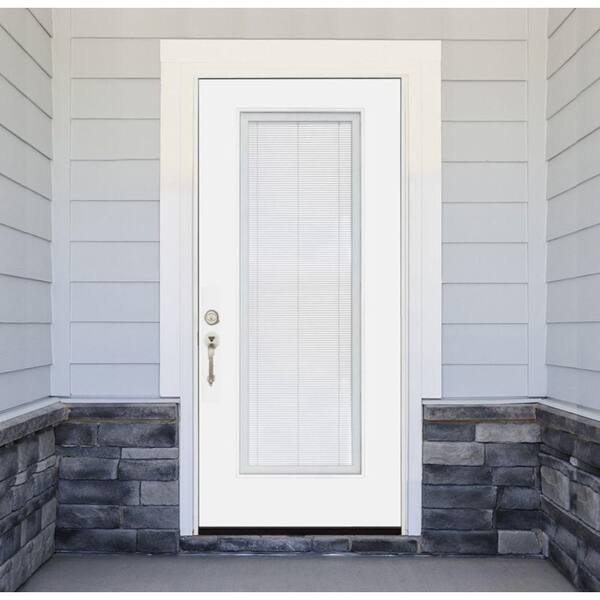 Legacy 36 in. x 80 in. Right-Hand/Inswing Full Lite Clear Glass Mini-Blind White Primed Fiberglass Prehung Front Door