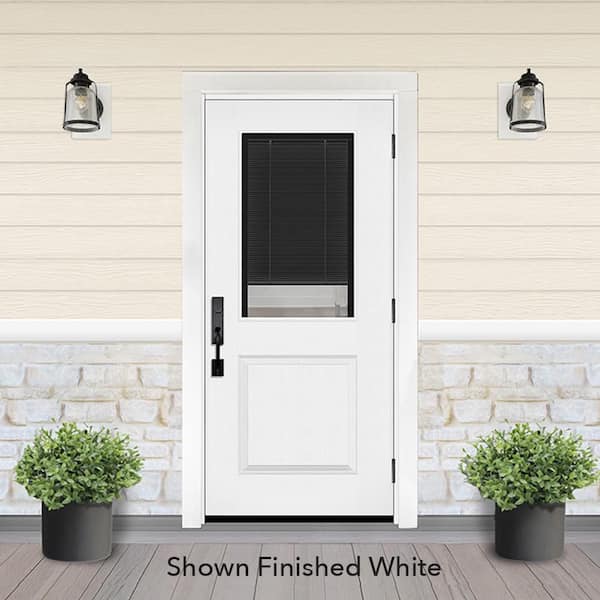 Legacy 36 in. x 80 in. Universal Handing 1/2-Lite Clear Glass Noir Miniblind White Finish Fiberglass Front Door Slab