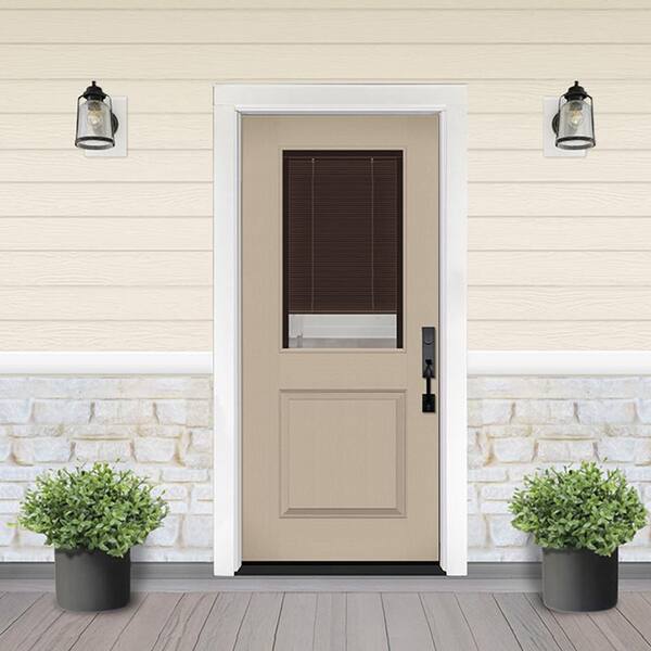 Legacy 36 in. x 80 in. Universal Handing 1/2Lite Clear Glass Mocha Miniblind Sandstone Finish Fiberglass Front Door Slab