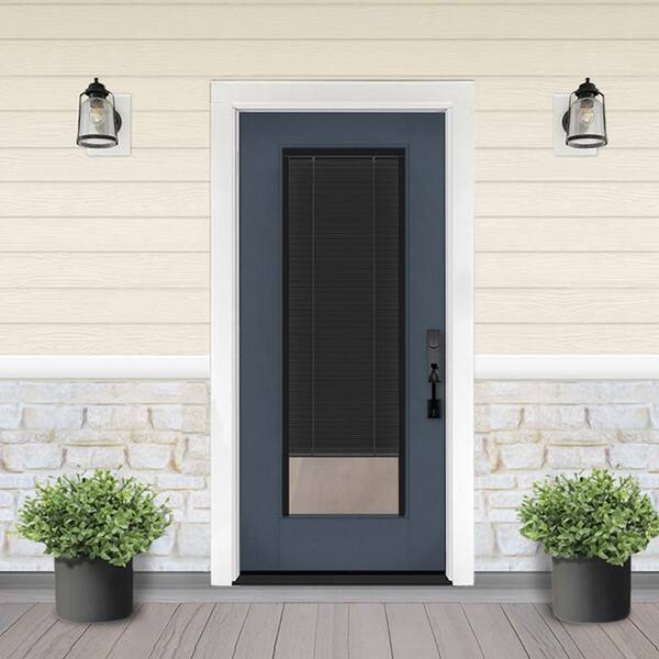 Legacy 36 in. x 80 in. Universal Handing Full Lite Clear Glass Noir Miniblind Dark Denim Fiberglass Front Door Slab