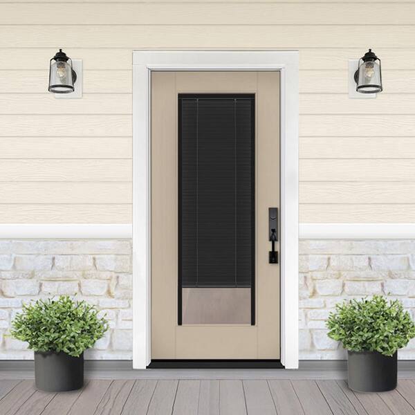 Legacy 36 in. x 80 in. Universal Handing Full Lite Clear Glass Noir Miniblind Sandstone Fiberglass Front Door Slab
