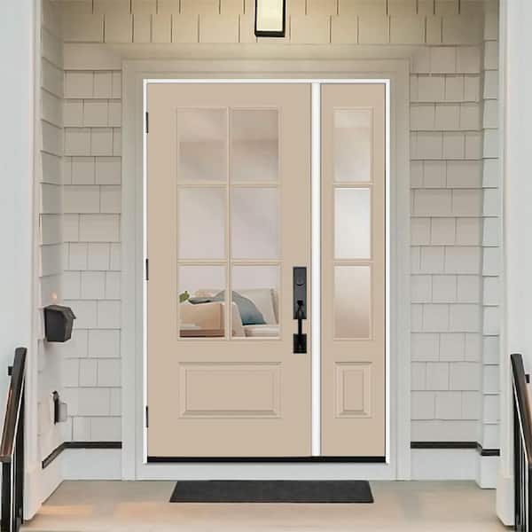 Legacy 49 in. x 80 in. 3/4-6-Lite Clear Glass LHIS Primed Sandstone Finish Fiberglass Prehung Front Door 10 in. SL