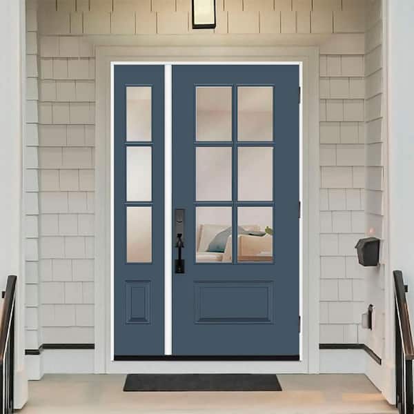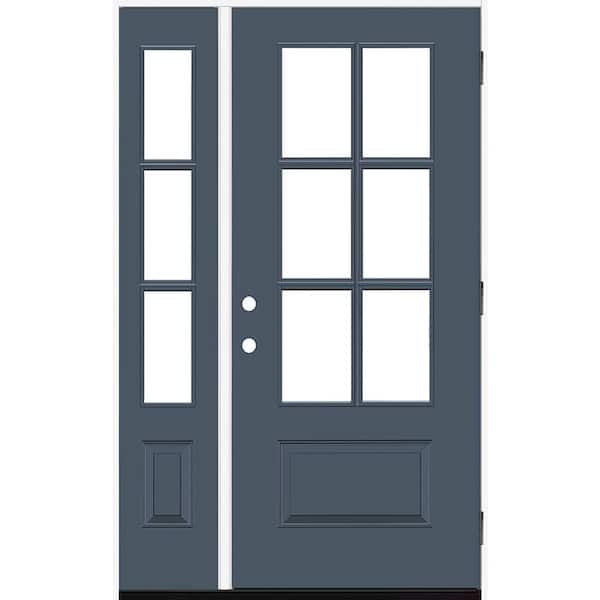 Legacy 49 in. x 80 in. 3/4-6Lite Clear Glass LHOS Primed Dark Denim Finish Fiberglass Prehung Front Door w/10in.SL