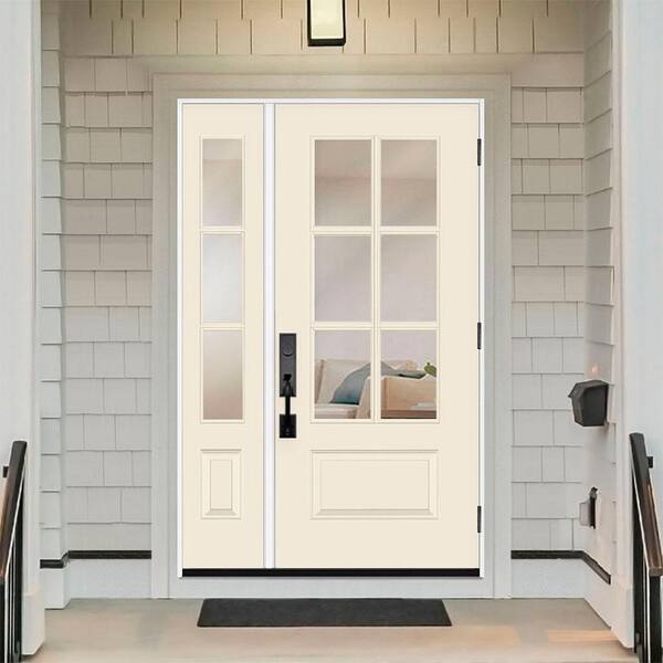 Legacy 49 in. x 80 in. 3/4-6Lite Clear Glass RHIS Primed Linen Finish Fiberglass Prehung Front Door with 10 in. SL