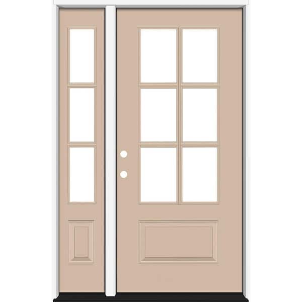Legacy 49 in. x 80 in. 3/4-6Lite Clear Glass RHIS Primed Sandstone Finish Fiberglass Prehung Front Door w/10in.SL