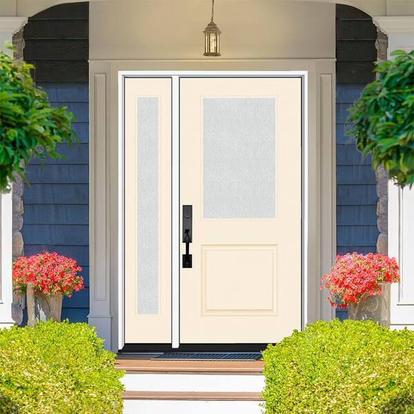 Legacy 51 in. W x 80 in. 1/2 Lite Rain Glass RHIS Primed Linen Finish Fiberglass Prehung Front Door with 12 in. SL