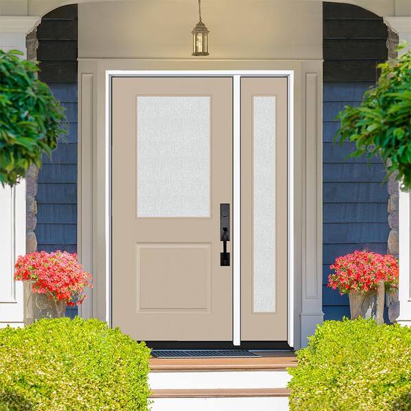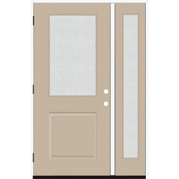 Legacy 51 in. W x 80 in. 1/2 Lite Rain Glass RHOS Primed Sandstone Finish Fiberglass Prehung Front Door with 12 in. SL