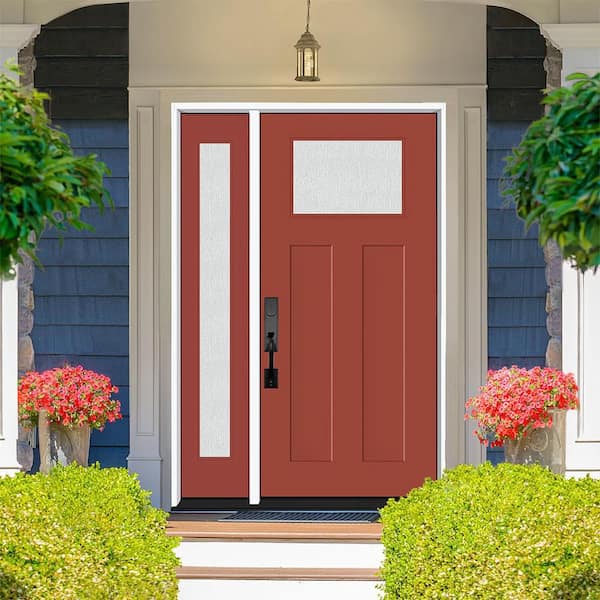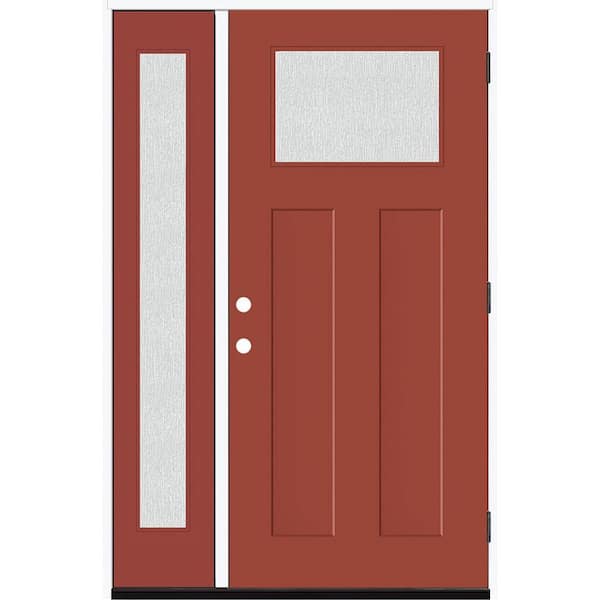 Legacy 51 in. x 80 in. 1/4 Toplite Rain Glass LHOS Primed Morocco Red Finish Fiberglass Prehung Front Door w/12 in. SL