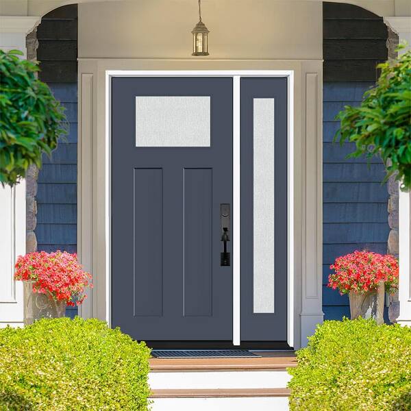 Legacy 51 in. x 80 in. 1/4 Toplite Rain Glass RHOS Primed Dark Denim Finish Fiberglass Prehung Front Door w/12 in. SL
