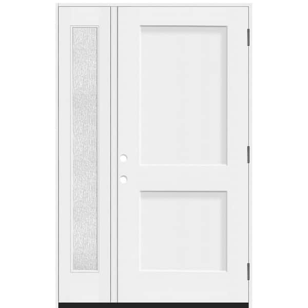 Legacy 51 in. x 80 in. 2P Squaretop Shaker LHOS Unfinished White Fiberglass Prehung Front Door wRain 12 in.SL6-9/16 Jamb