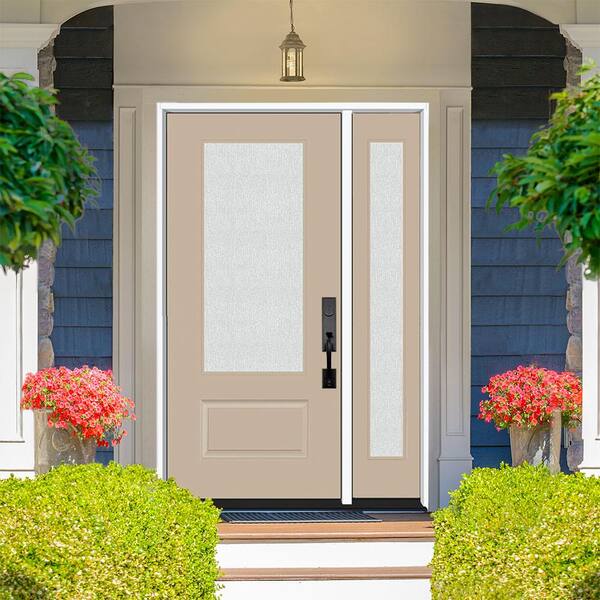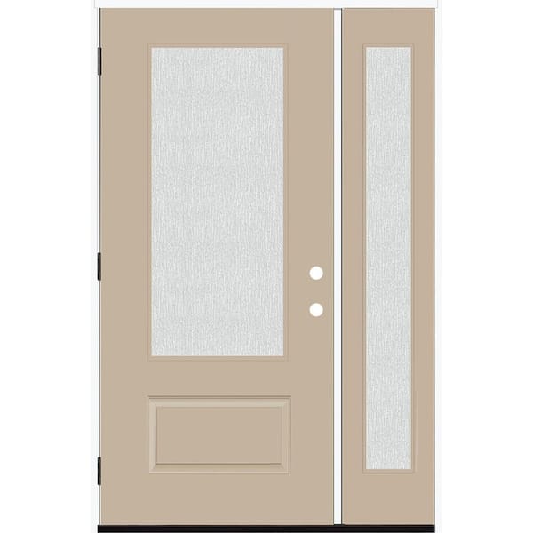 Legacy 51 in. x 80 in. 3/4 Lite Rain Glass RHOS Sandstone Finish Fiberglass Prehung Front Door with 12 in. SL