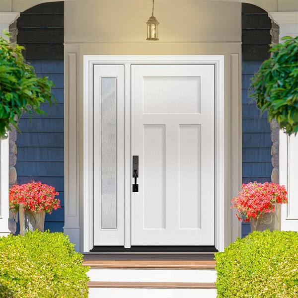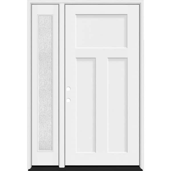 Legacy 51 in. x 80 in. 3 Panel Craftsman RHIS Unfinished White Fiberglass Prehung Front Door w/Rain 12" SL 4-9/16 Jamb