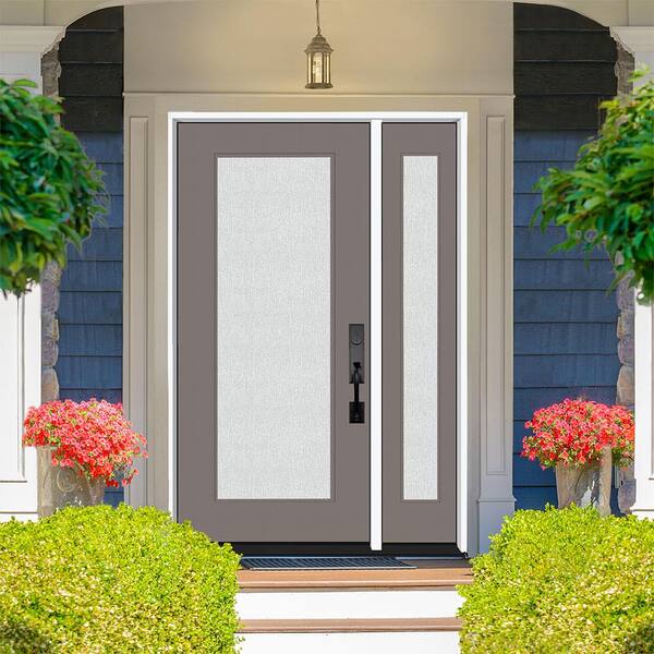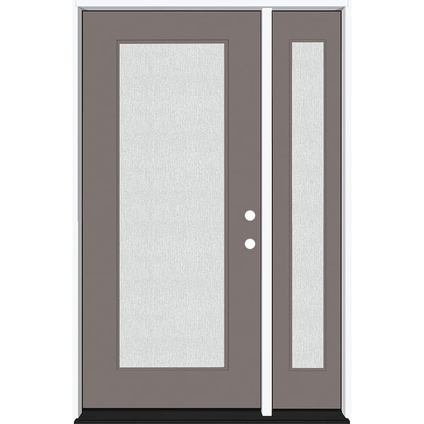 Legacy 51 in. x 80 in. Full Lite Rain Glass LHIS Primed Kindling Finish Fiberglass Prehung Front Door with 12 in. SL