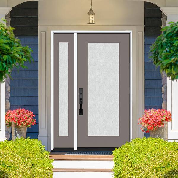 Legacy 51 in. x 80 in. Full Lite Rain Glass LHOS Primed Kindling Finish Fiberglass Prehung Front Door with 12 in. SL
