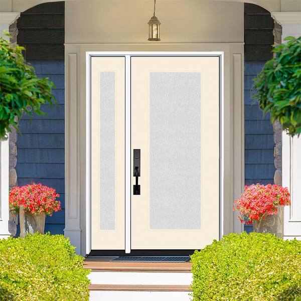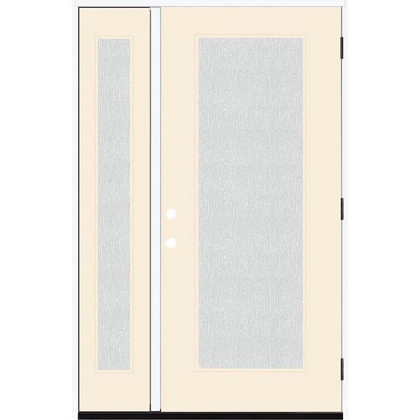 Legacy 51 in. x 80 in. Full Lite Rain Glass LHOS Primed Linen Finish Fiberglass Prehung Front Door with 12 in. SL