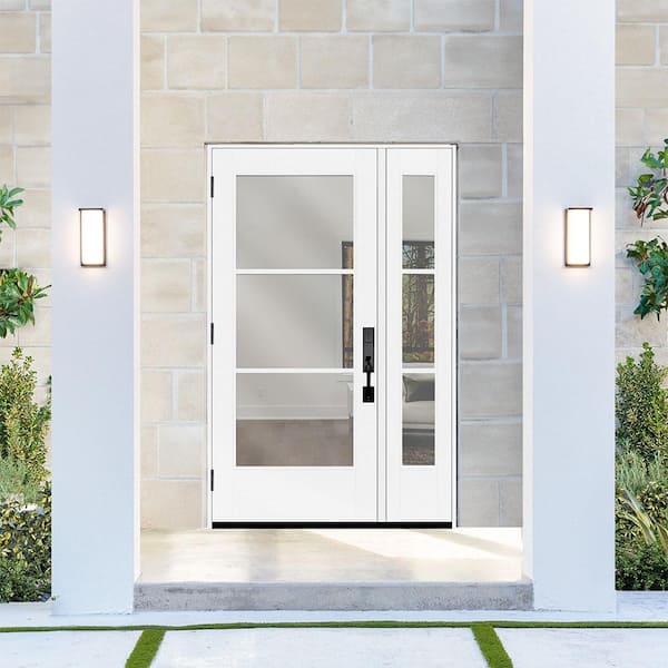 Legacy 51 in. x 80 in. Icon 3 Lite Modern Clear Glass RHOS Primed Fiberglass Prehung Front Door with12in.SL