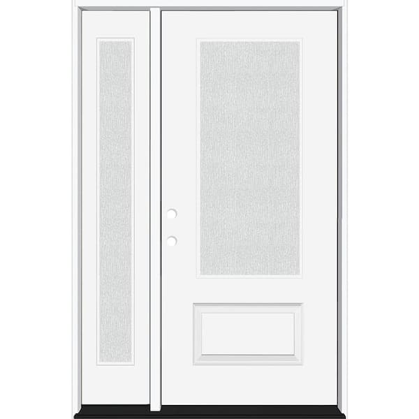 Legacy 53 in. W. x 80 in. 3/4-Lite Rain Glass RHIS Primed White Finish Fiberglass Prehung Front Door with 14 in. SL