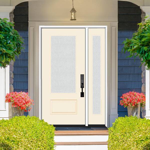Legacy 53 in. W. x 80 in. 3/4-Lite Rain Glass RHOS Primed Linen Finish Fiberglass Prehung Front Door with 14 in. SL