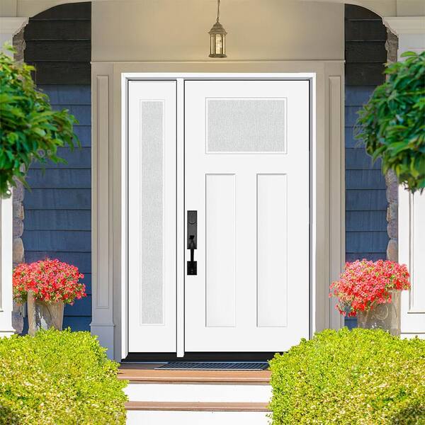 Legacy 53 in. x 80 in. 1/4 Toplite Rain Glass LHOS Primed Unfinished Fiberglass Prehung Front Door w/14 in. SL
