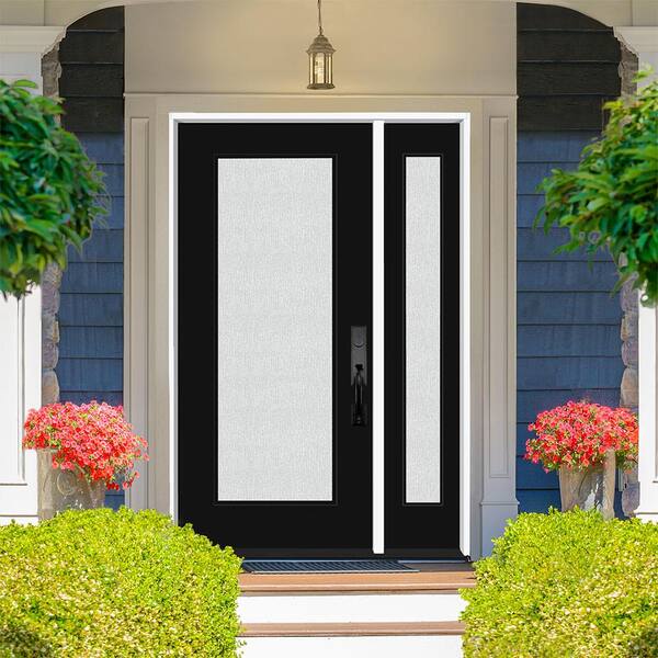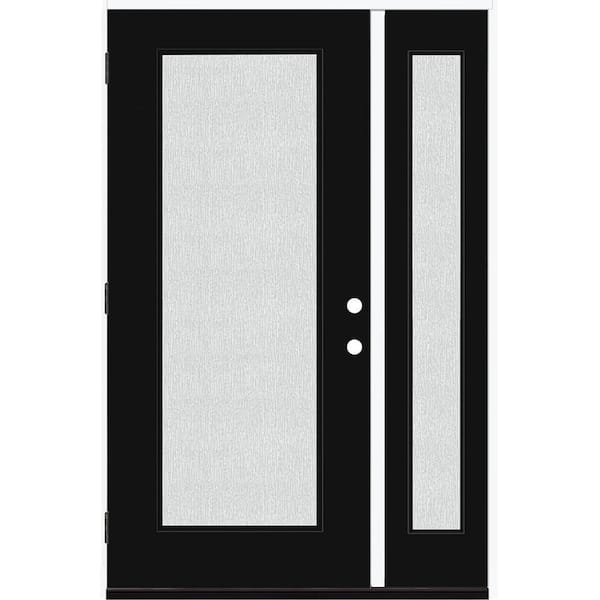 Legacy 53 in. x 80 in. Full Lite Rain Glass RHOS Primed Black Finish Fiberglass Prehung Front Door with 14 in. SL