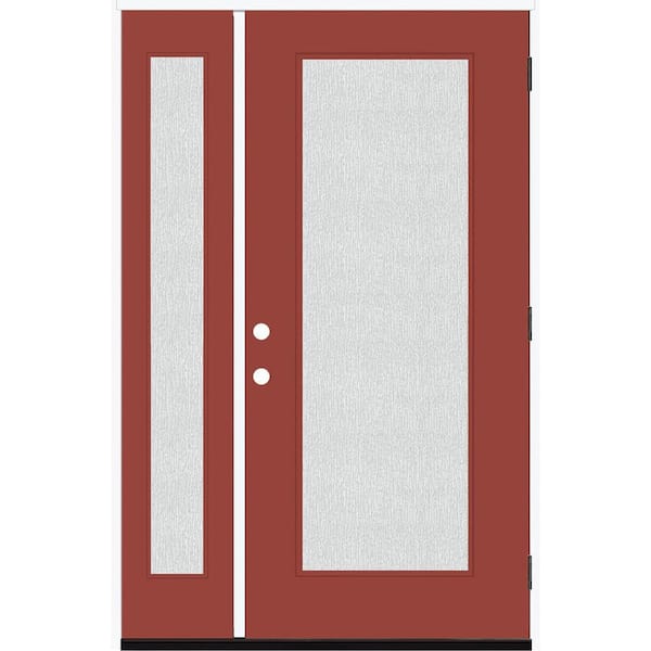 Legacy 53 in. x 80 in. LHOS Full Lite Rain Glass Primed Morocco Red Finish Fiberglass Prehung Front Door with 14 in. SL