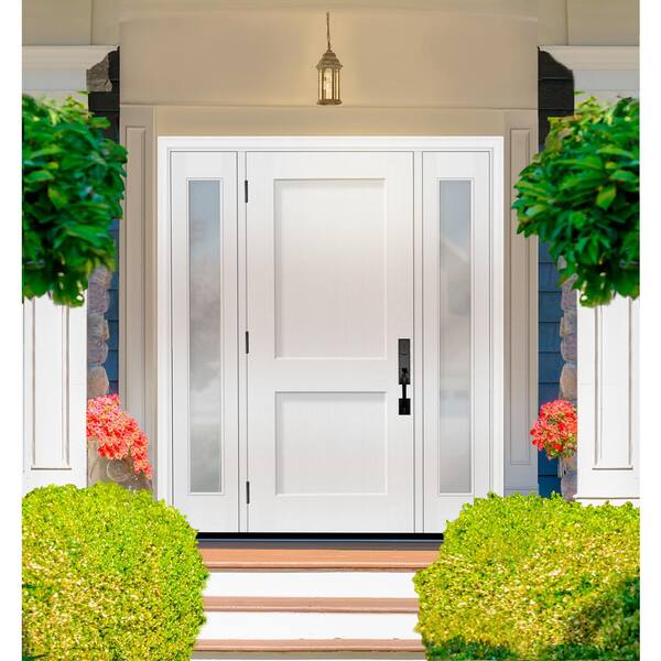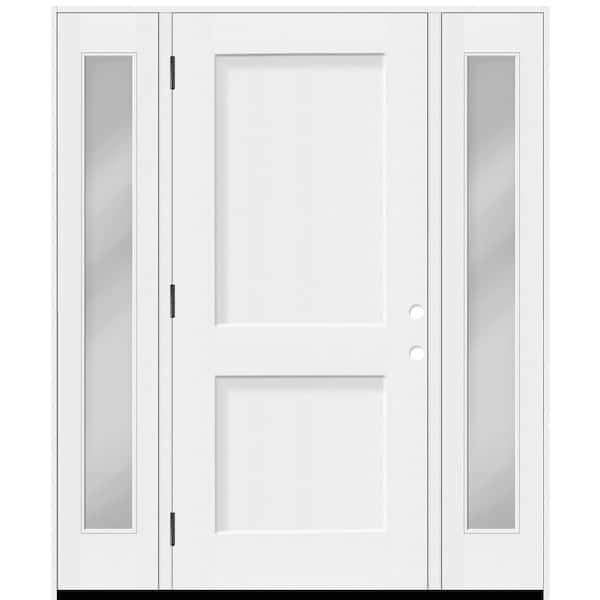 Legacy 60 in. x 80 in. 2P Squaretop Shaker RHOS Unfinished White Fiberglass Prehung Front Door wClear10in.SLs4-9/16 Jamb