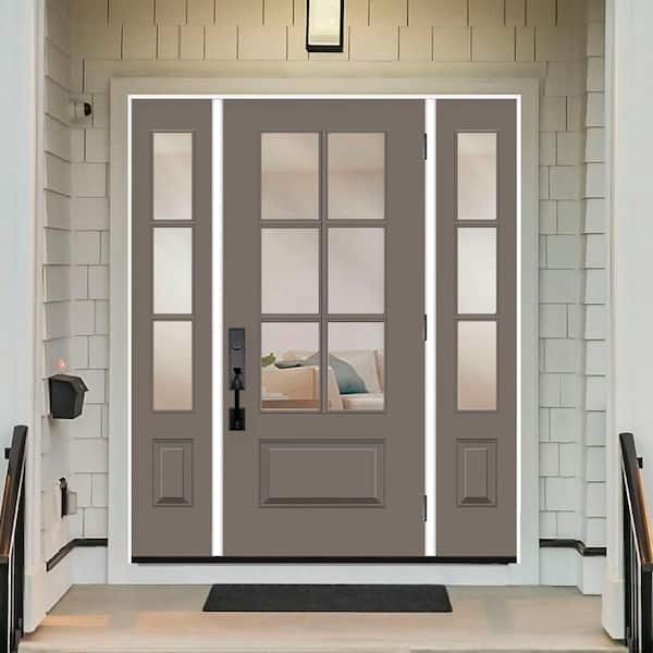 Legacy 60 in. x 80 in. 3/4-6-Lite Clear Glass LHOS Primed Kindling Finish Fiberglass Prehung Front Door w/Dbl 10 in. SL
