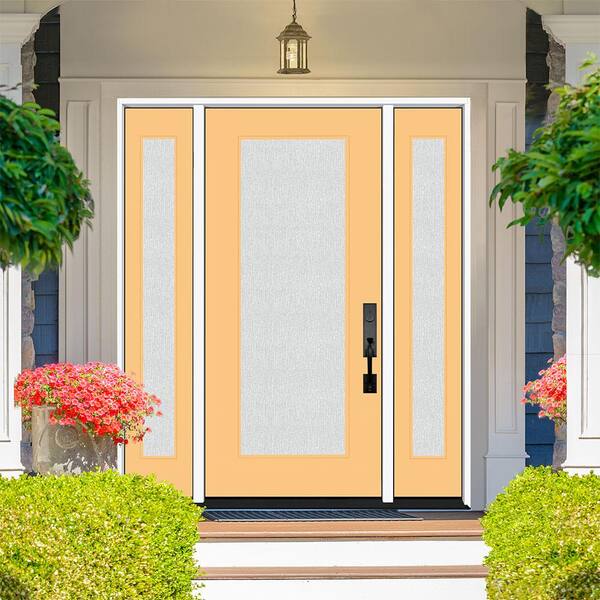 Legacy 60 in. x 80 in. 3/4-6 Lite Clear Glass RHIS Primed Jackfruit Finish Fiberglass Prehung Front Door w/Dbl 10 in. SL