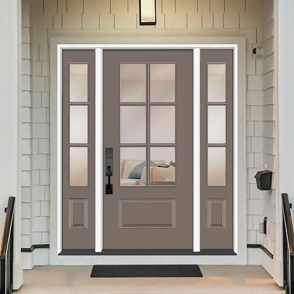Legacy 60 in. x 80 in. 3/4-6Lite RHIS Clear Glass Primed Kindling Finish Fiberglass Prehung Front Door w/Dbl 10 in. SL
