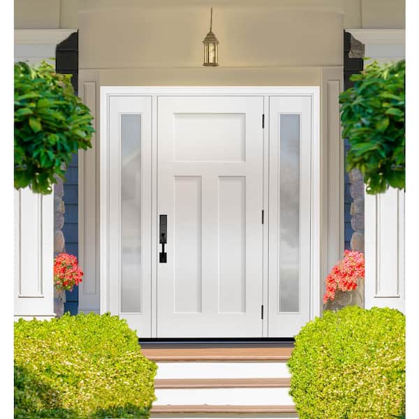 Legacy 60 in. x 80 in. 3 Panel Craftsman LHIS Unfinished White Fiberglass Prehung Front Door Clear 10 in. SL 6-9/16 Jamb
