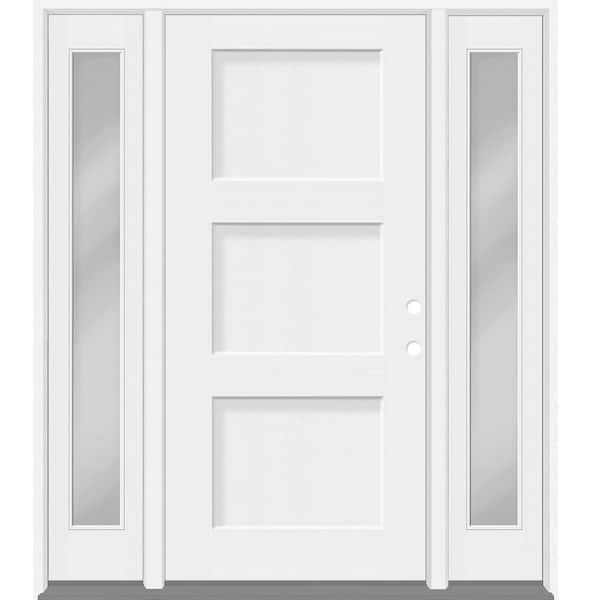 Legacy 60 in. x 80 in. 3P Equal Shaker LHIS Unfinished White Fiberglass Prehung Front Door w/Clear 10 in.SLs 4-9/16 Jamb