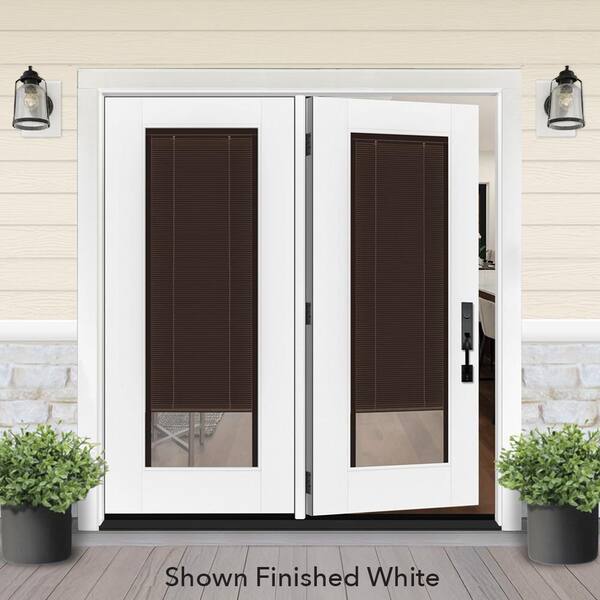 Legacy 60 in. x 80 in. Full Lite Clear Glass Mocha MB White LH Center-Hinged Fiberglass Retro Patio Door with 6 in. Jamb