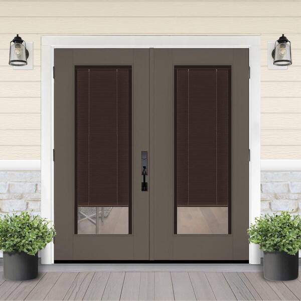 Legacy 60 in. x 80 in. Full Lite Clear Glass Mocha Miniblind Kindling RHOS Fiberglass Retro Patio Door with 6 in. Jamb