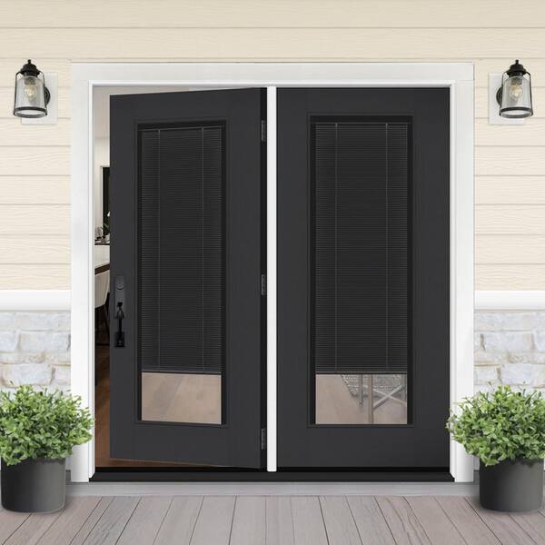 Legacy 60 in. x 80 in. Full Lite Clear Glass Noir MB Black RH Center-Hinged Stained Fiberglass Retro Patio Door w/4"Jamb