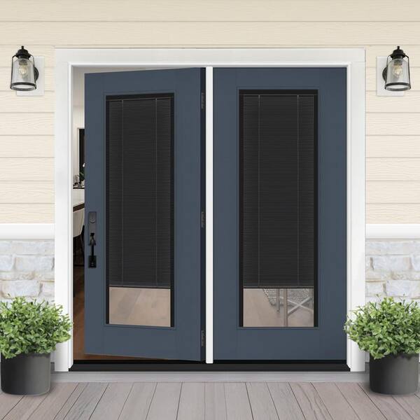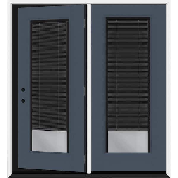 Legacy 60 in. x 80 in. Full Lite Clear Glass Noir MB Dark Denim RH Center-Hinged Fiberglass Retro Patio Door w/6"Jamb