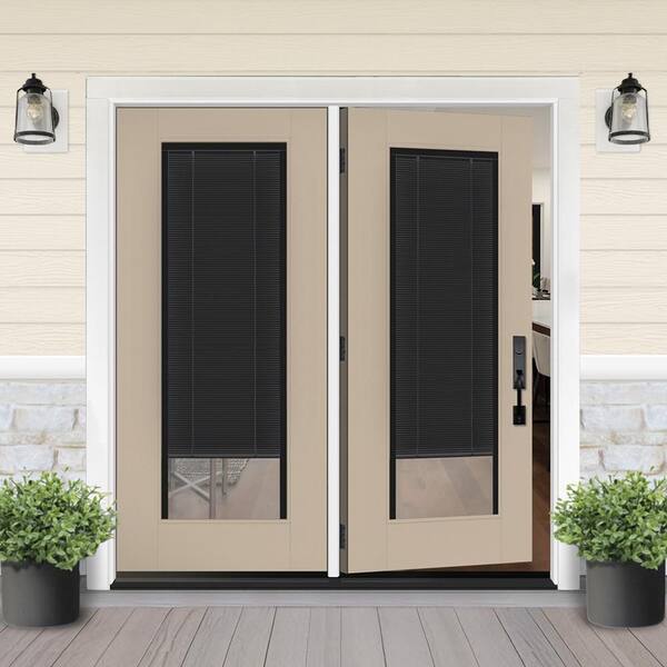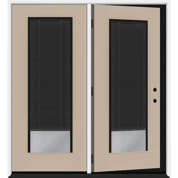 Legacy 60 in. x 80 in. Full Lite Clear Glass Noir MB Sandstone LH Center-Hinged Fiberglass Retro Patio Door with 4"Jamb