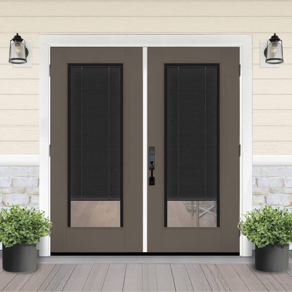 Legacy 60 in. x 80 in. Full Lite Clear Glass Noir Miniblind Kindling LHOS Fiberglass Retro Patio Door with 4 in. Jamb