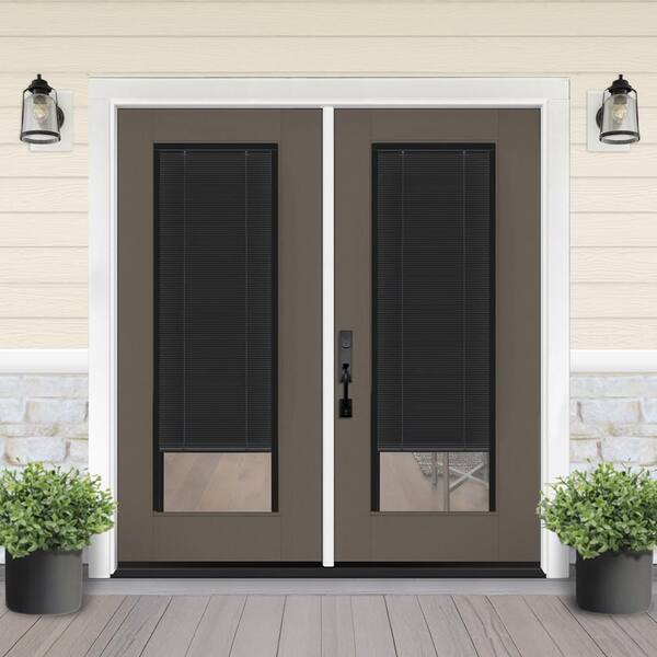 Legacy 60 in. x 80 in. Full Lite Clear Glass Noir Miniblind Kindling RHIS Fiberglass Retro Patio Door with 6 in. Jamb