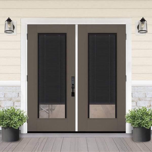 Legacy 60 in. x 80 in. Full Lite Clear Glass Noir Miniblind Kindling RHOS Fiberglass Retro Patio Door with 6 in. Jamb