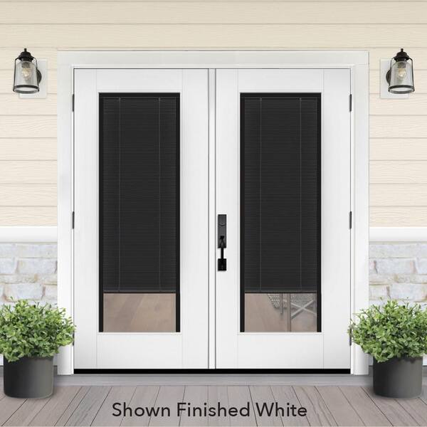 Legacy 60 in. x 80 in. Full Lite Clear Glass Noir Miniblind Unfinsihed LHOS Fiberglass Retro Patio Door w/6"Jamb