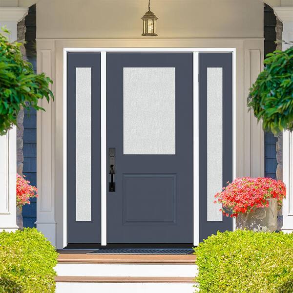 Legacy 64 in. W x 80 in. 1/2 Lite Rain Glass LHOS Primed Dark Denim Finish Fiberglass Prehung Front Door Db 12 in. SL