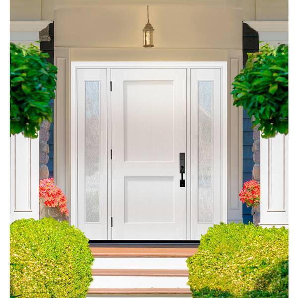 Legacy 64 in. x 80 in. 2P Squaretop Shaker RHOS Unfinished White Fiberglass Prehung Front Door wRain12in.SLs 6-9/16 Jamb