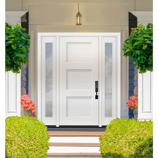Legacy 64 in. x 80 in. 3P Equal Shaker LHIS Unfinished White Fiberglass Prehung Front Door w/Clear 12 in.SLs 6-9/16 Jamb