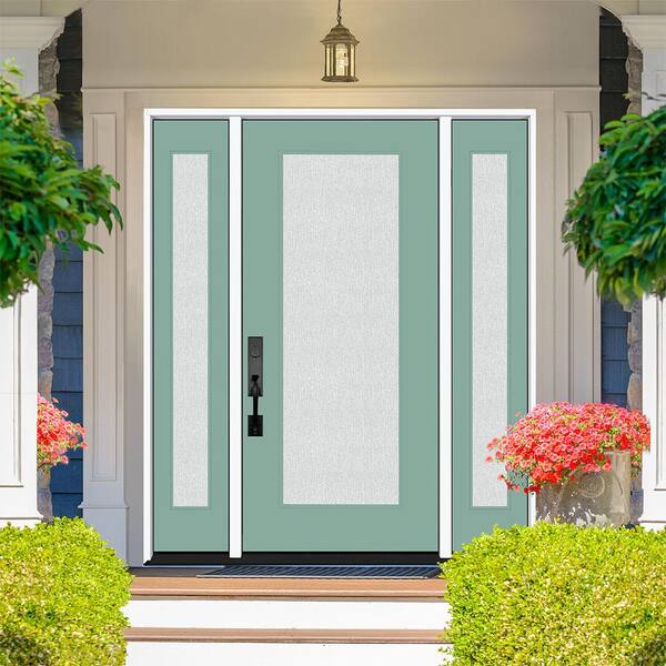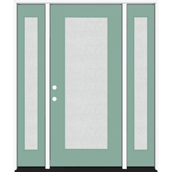 Legacy 64 in. x 80 in. Full Lite Rain Glass RHIS Primed Quarry Finish Fiberglass Prehung Front Door with Dbl 12 in. SL