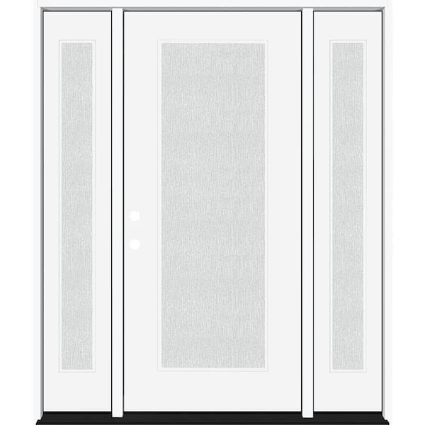 Legacy 64 in. x 80 in. Full Lite Rain Glass RHIS Primed White Finish Fiberglass Prehung Front Door with Dbl 12 in. SL