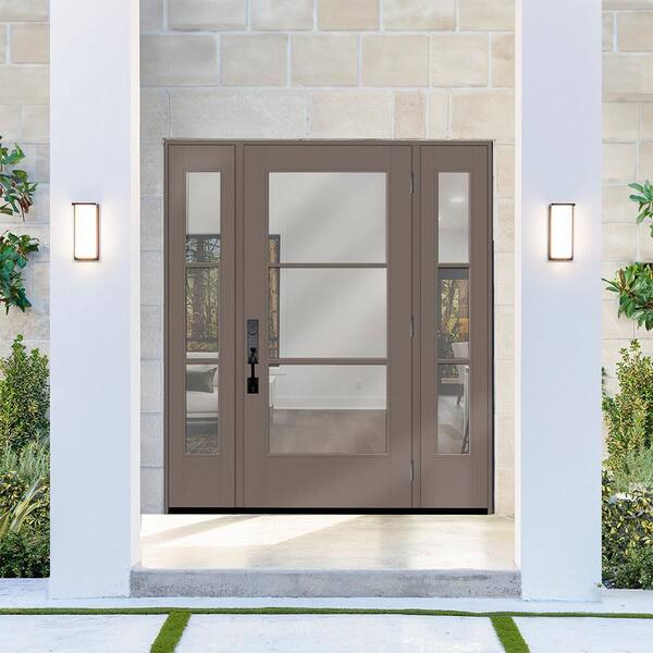 Legacy 64 in. x 80 in. Icon 3-Lite Modern Clear Glass LHOS Kindling Mahogany Fiberglass Prehung Front Door Dbl 12 in. SL