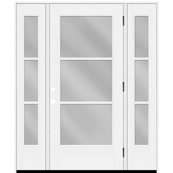 Legacy 64 in. x 80 in. Icon 3 Lite Modern Clear Glass LHOS Primed Fiberglass Prehung Front Door w/ Dbl 12 in. SL