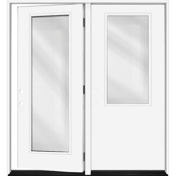 Legacy 64 in. x 80 in.Primed RH Inswing Center-Hinged Fiberglass 2/3 Clear Tempered Glass Prehung Double Patio Door