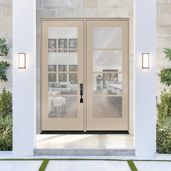 Legacy 64 in. x 96 in. Icon 4L Modern Clear Glass Sandstone LHIS Fiberglass Double Prehung Front Door with 4-9/16 Jamb